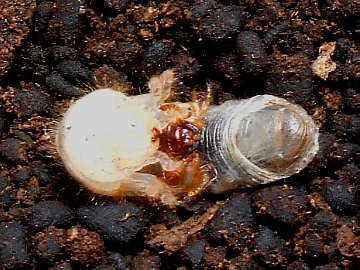 【カブトムシの脱皮(初齢幼虫〜2齢幼虫)の連続写真】